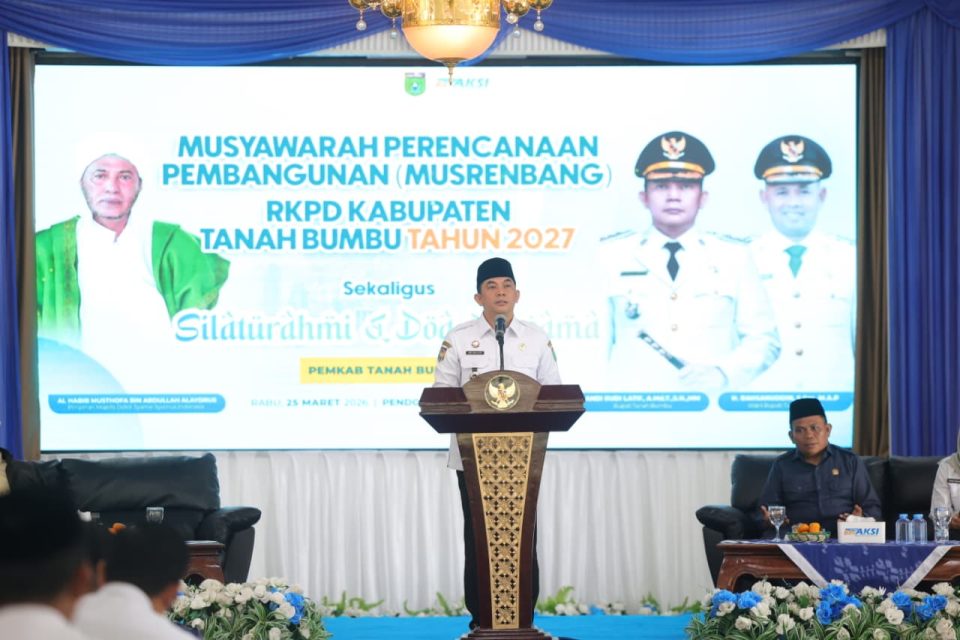 Bupati Tanah Bumbu, Andi Rudi Latif, resmi membuka Musyawarah Perencanaan Pembangunan (Musrenbang) Rencana Kerja Pemerintah Daerah (RKPD) Tahun 2027 di Pendopo Kantor Bupati, Rabu (25/3/2026). Forum ini menjadi momen penting untuk merumuskan arah pembangunan daerah dengan fokus pada transformasi infrastruktur, ekonomi, dan pelayanan publik.